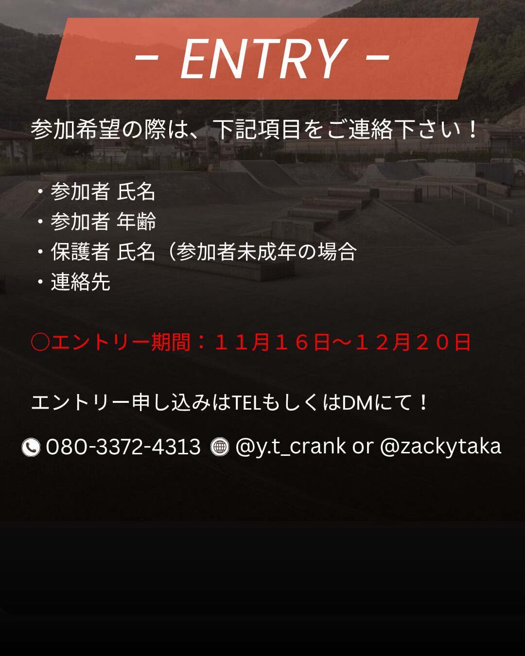 お問合せ・申し込みはDMやTELなどから! @y.t_crank or @zackytaka に!