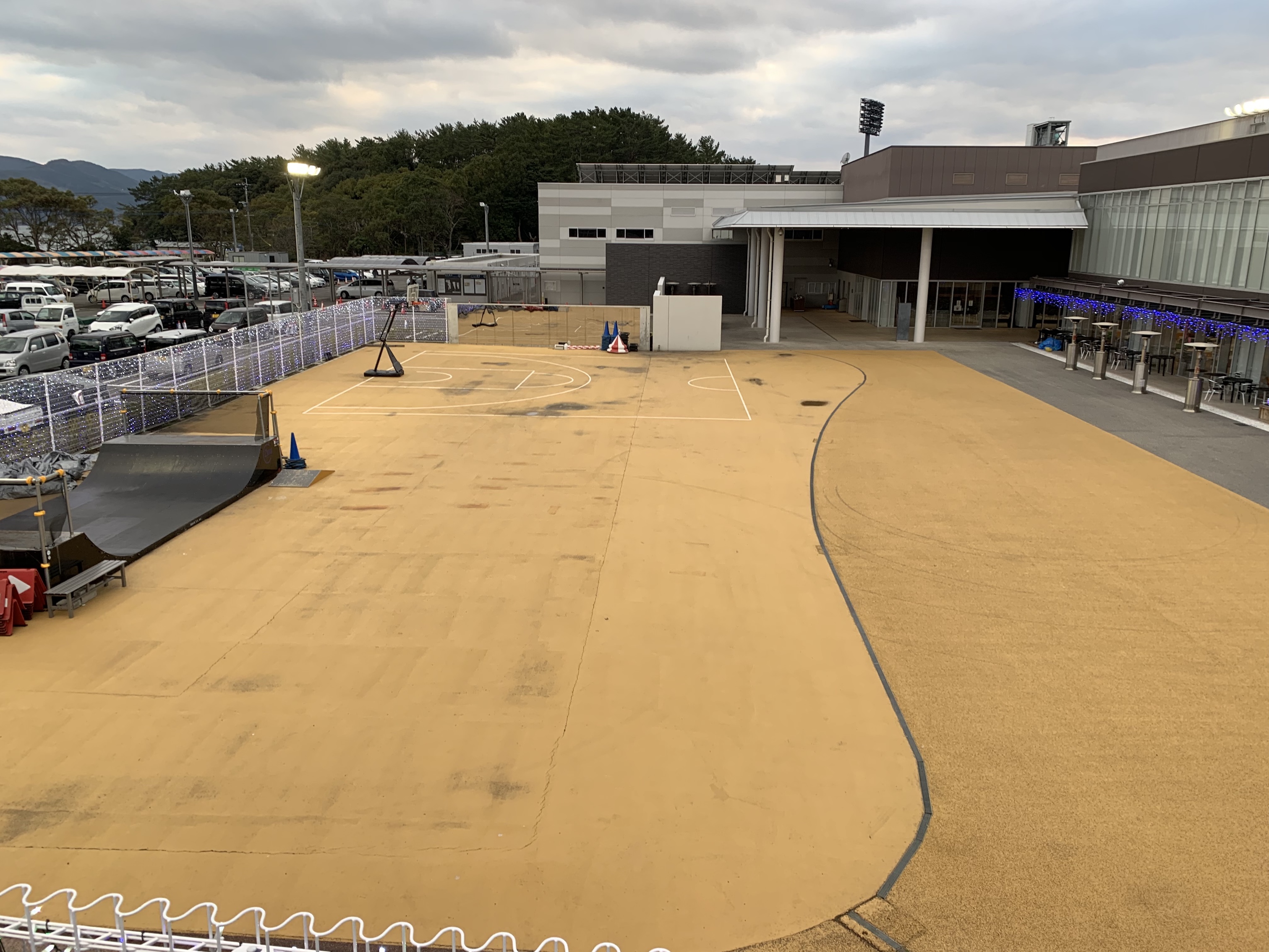 レース会場となりの駐車場が、パンプトラック・休憩エリアになります。
